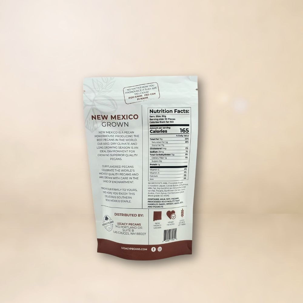 - Milk Chocolate Pecans are sure to please everyone. The crunch of the pecan with the smoothness of the chocolate pairs perfectly to keep you wanting more. It is the perfect snack or desert. Available in 4 oz packaging.